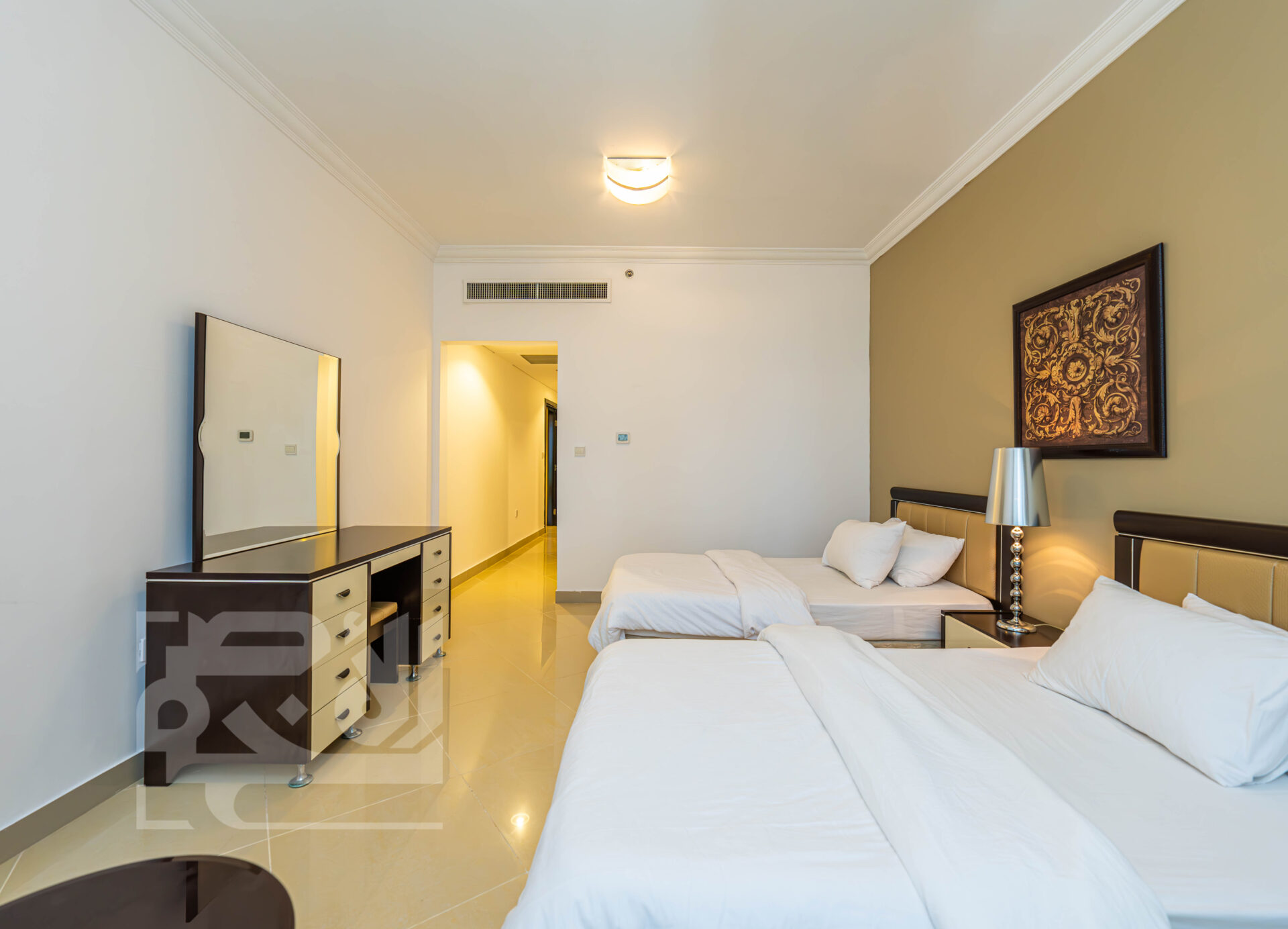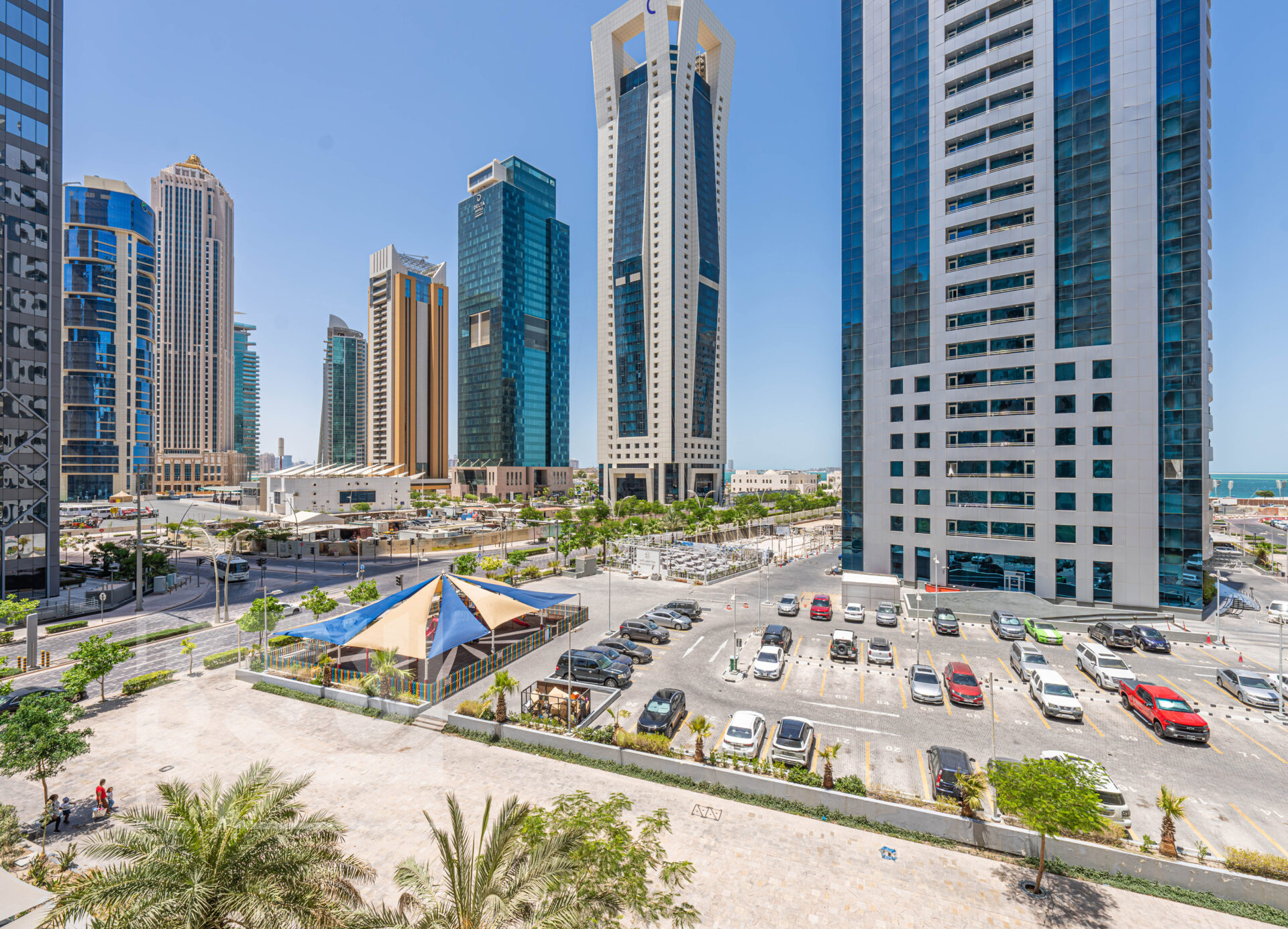 Indulge in an array of world-class amenities that set this residential tower apart. Discover the convenience of a 24-hour convenience store, pamper yourself at the sophisticated beauty salon for both men and women, and rejuvenate your senses at the biggest spa in Qatar, complete with luxurious treatment rooms and a massage center.